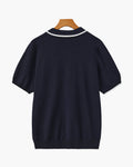 Ein elegantes navy Polo mit klaren weißen Akzenten, perfekt für mühelose Übergänge von lässigen Ausflügen zu smarten Anlässen. Hergestellt aus einem hochwertigen Strickstoff, bietet es eine schmeichelhafte Passform und sorgt für ganztäglichen Komfort. Kombinieren Sie es mit maßgeschneiderten Hosen oder lässigen Chinos für einen raffinierten Look.